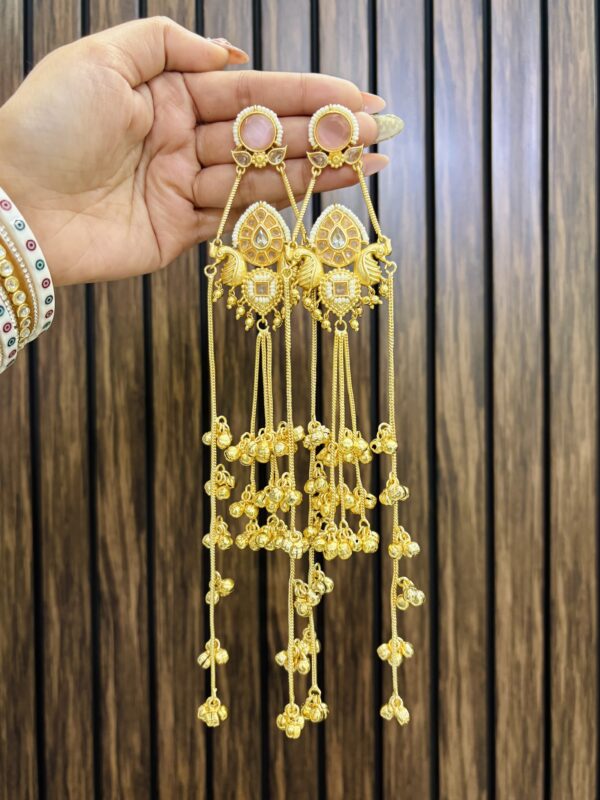 Two peacock brass earrings pink