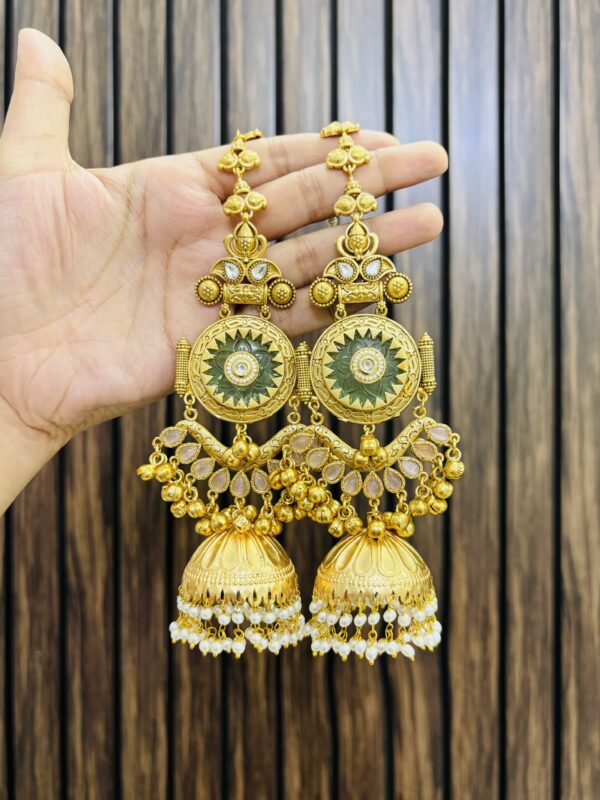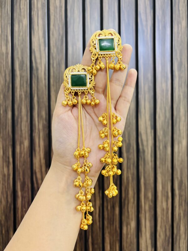 Geetika brass jhumka green