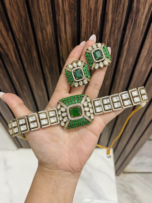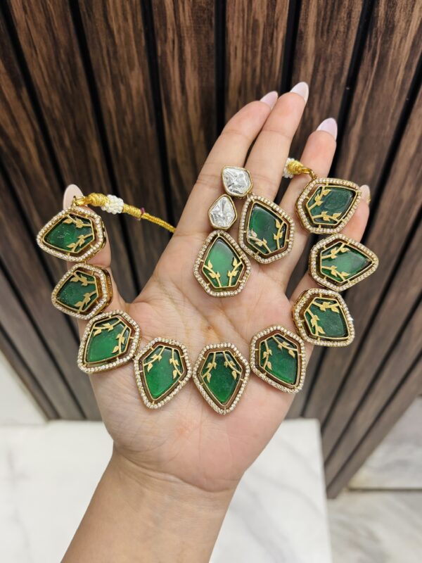 Adhira gold a like necklace with earrings green