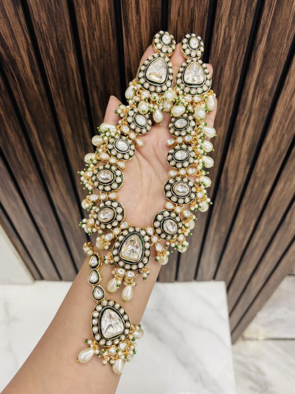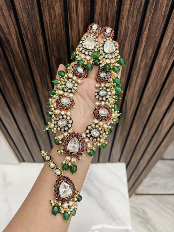 kundan necklace with earrings and mangtika green