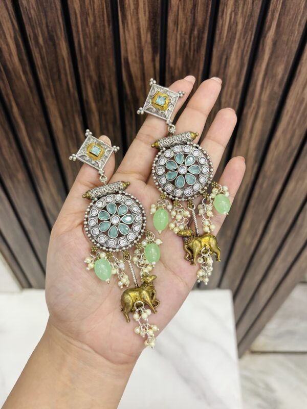 Lakshmi brass Ad big stone earring Mint
