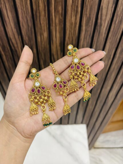 Layer polki necklace with earrings