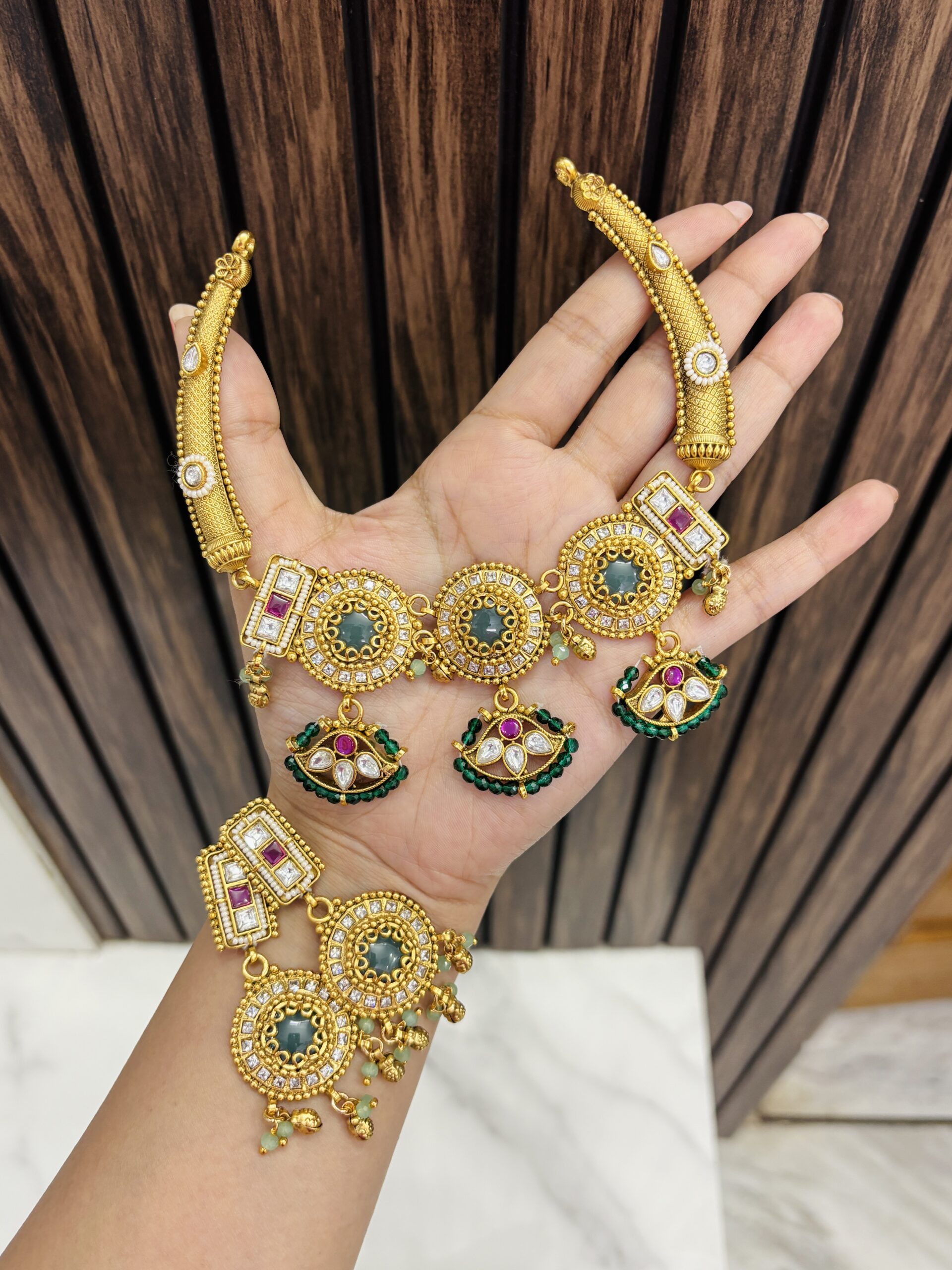 Vanya gold a like necklace green Original price was: ₹2,500.00.Current price is: ₹1,599.00.