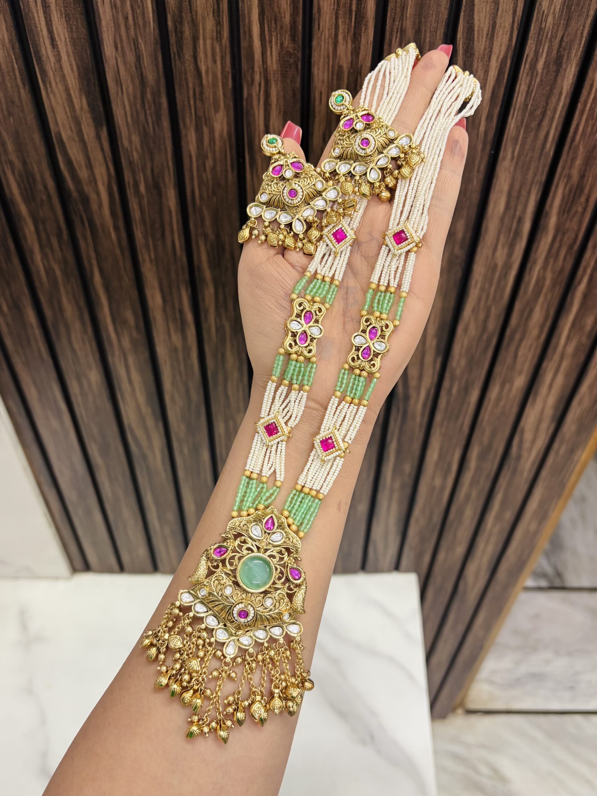 Anya gold a like necklace with earrings mint Original price was: ₹2,900.00.Current price is: ₹1,450.00.