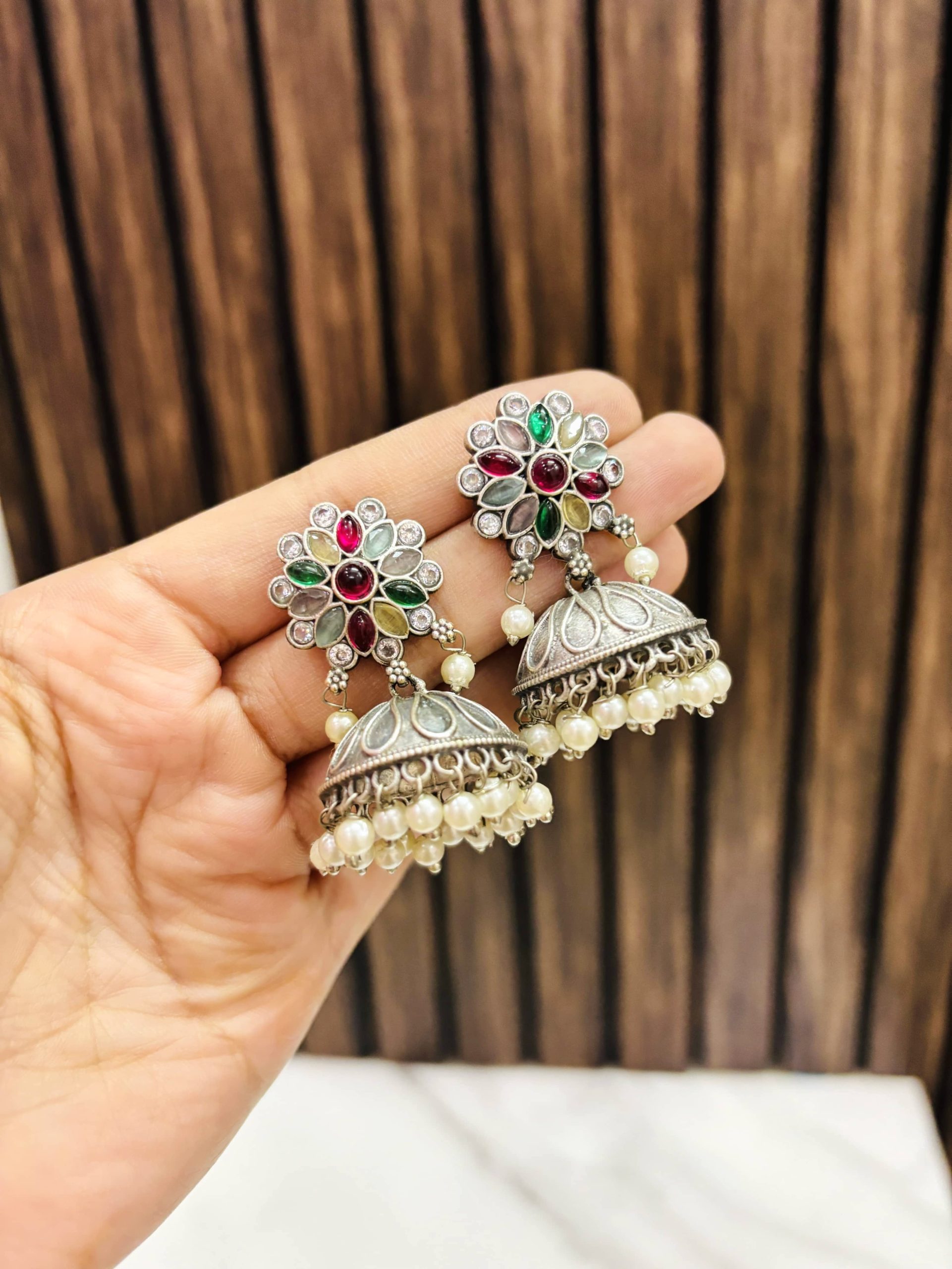 Multi Flower brass jhumka